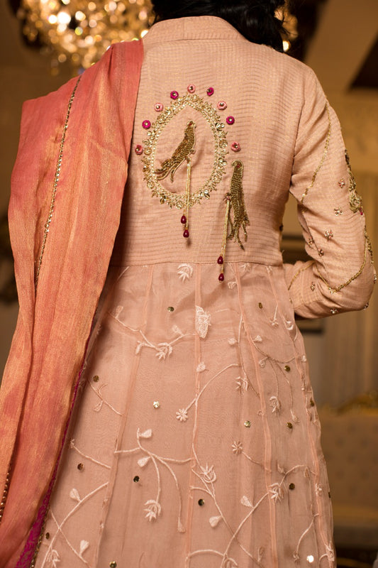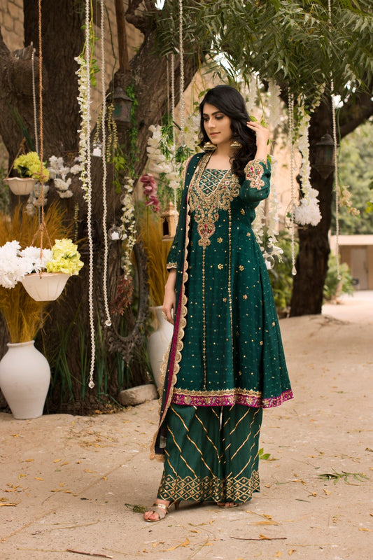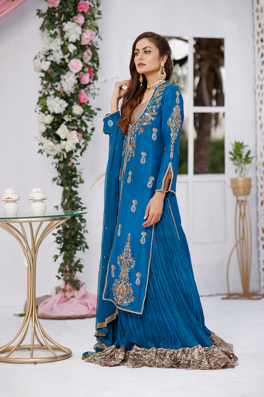 Teal Heavy Jacket with Crushed Lehnga